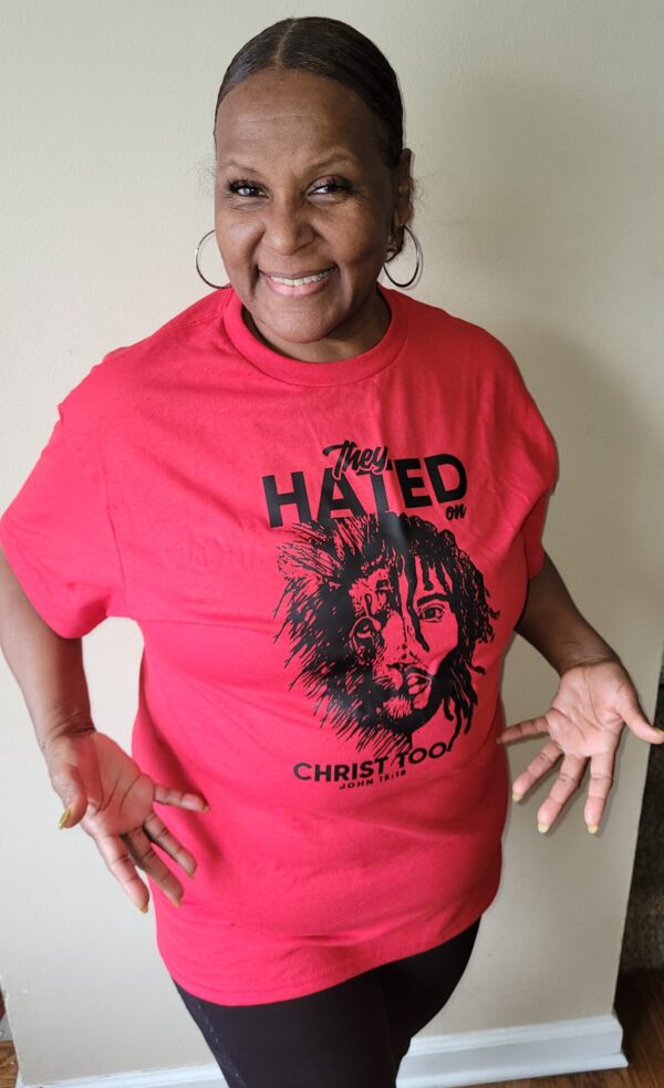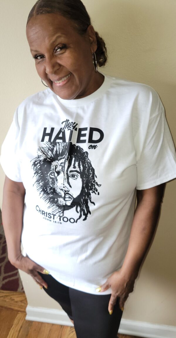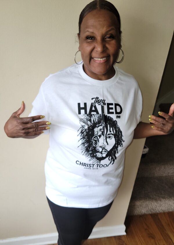 This is a special shirt for men and women that is great for all occasions. It has the imagery of a fierce lion with a man of God next to him. The shirt says ” They hated on Christ too!” It also has the scripture John 15:18 on the bottom, which reads .” If the world hate you, ye know that it hated me before it hated you.” This shirt is available in red and white! Please specify color and size at checkout. white available in sizes Small-2xl and red available in M – XL.